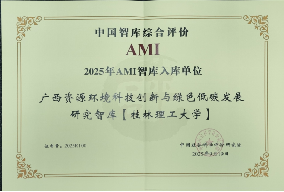 我校廣西科技智庫入選“2025年AMI智庫入庫單位”